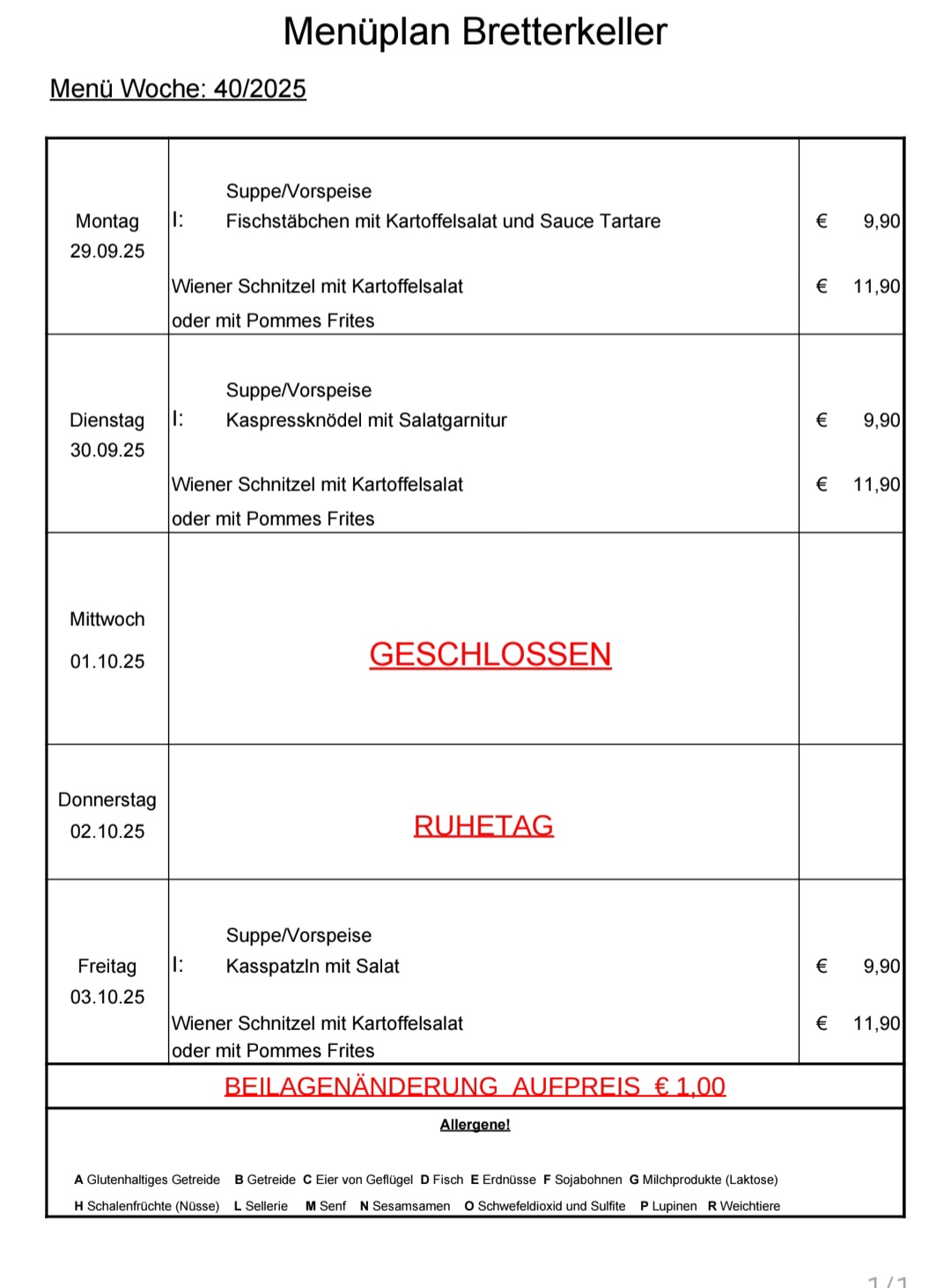Menüplan gültig 11 Uhr bis 14 Uhr